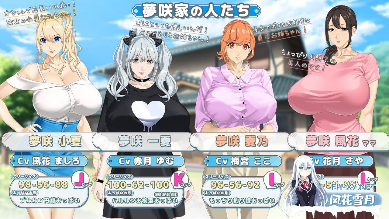 因为妹妹即将出生,暑假期间,我要去母亲亲戚所居住的“梦咲家”所在的夏风村。夏风村是个非常小的乡下村庄。广阔的田园风光。灼热的太阳、蝉与暮蝉的虫鸣。然后……还有那些喜欢着我、既H又充满魅力的姐姐们。在这为期一个月的暑假里,我将「手牵着手」感受到怎样的夏日心动与心跳加速呢?那……当然取决于你。
